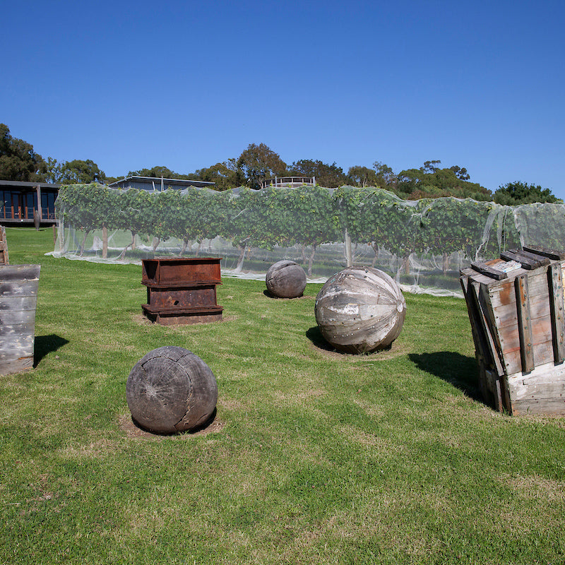 Timber, cast iron, stainless steel, marine rope.