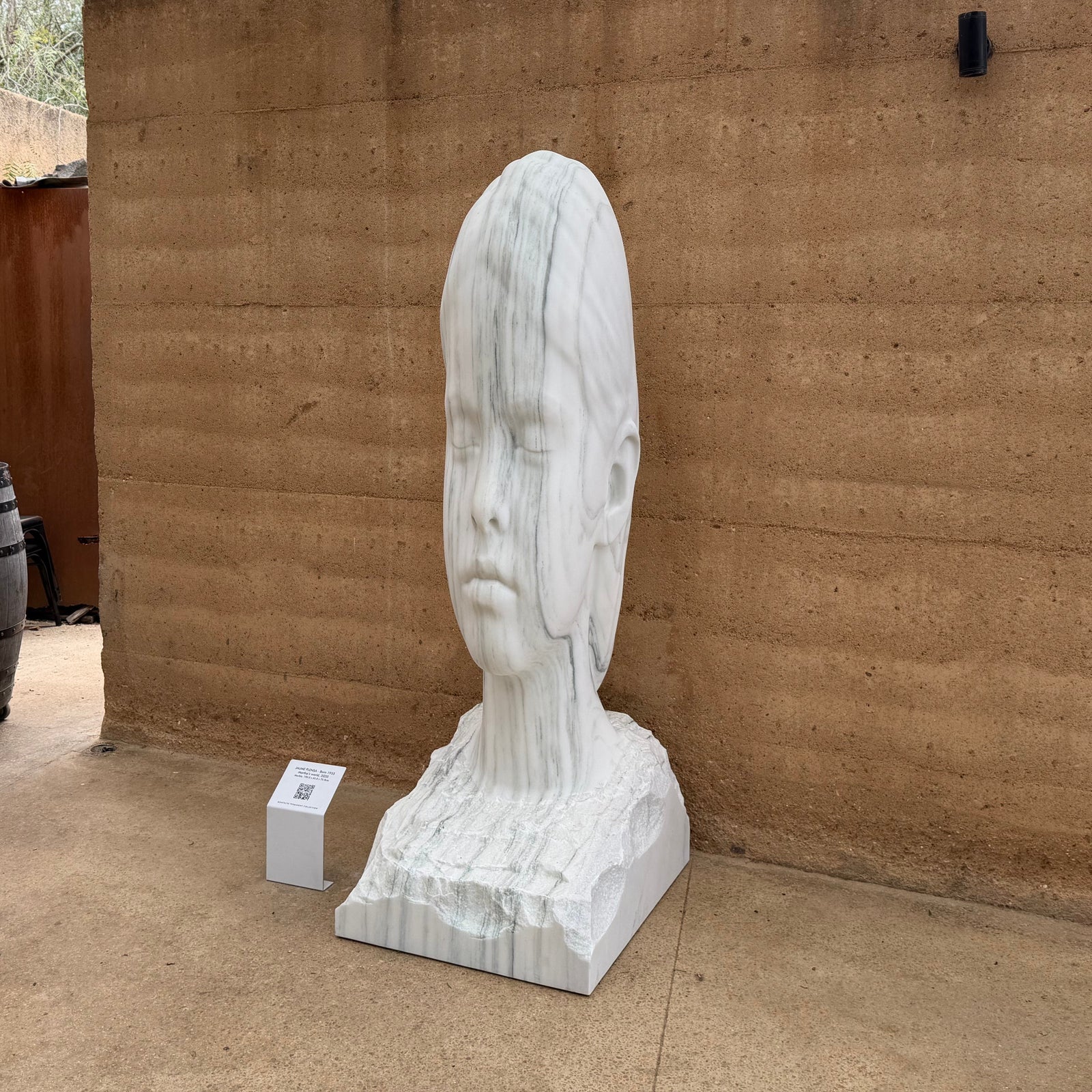 Created in 2020, the work reflects Plensa’s ongoing exploration of introspection through the human face, using marble to evoke clarity and permanence.